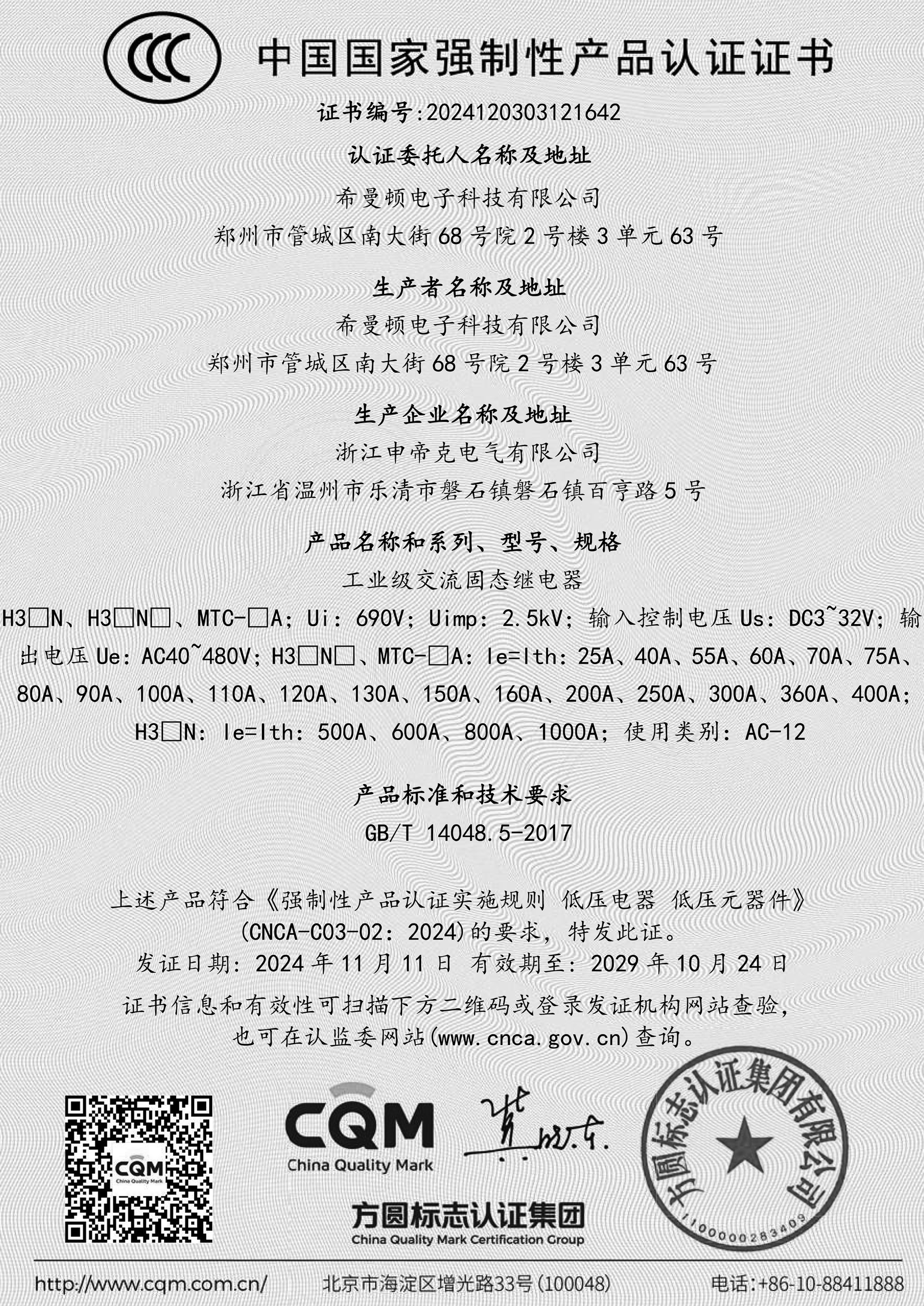希曼頓電子科技有限公司,前身北京希曼頓科技研究所,創立于1985年,是以設計開發、銷售全系列工業級交流固態繼電器(SSR)、一體化電力調整器為主的現代化企業。希曼頓電子科技有限公司主要產品是方塊型固態繼電器、導軌小型固態調壓器、SCR模塊、全隔離調壓模塊、電磁繼電器、PCB式固態繼電器、R型調壓器、信號輸入分類、整流橋、周波控制器、電磁繼電器、電力模塊等產品。